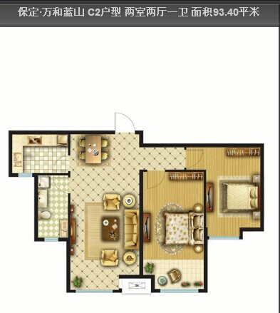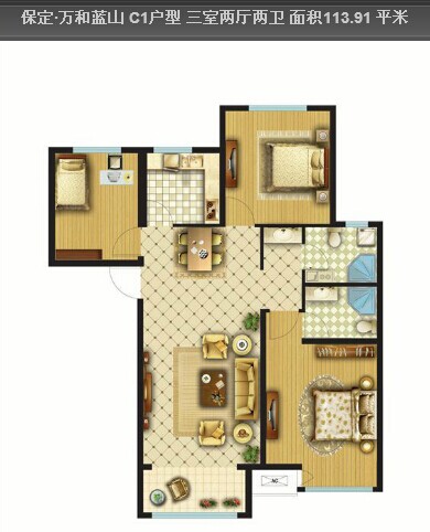 此次参观的是万和蓝山三室两厅两卫、建筑面积113.91平米的C1户型,以及两室两厅一卫、建筑面积93.40平米的C2户型。