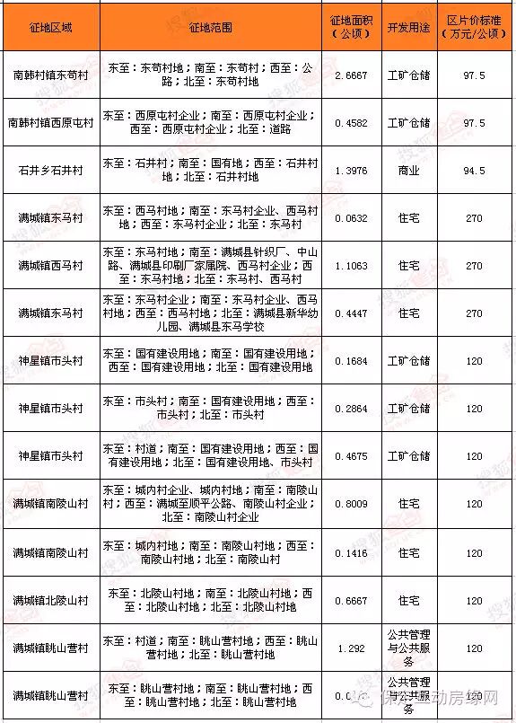 7-10月满城区征地详情:
